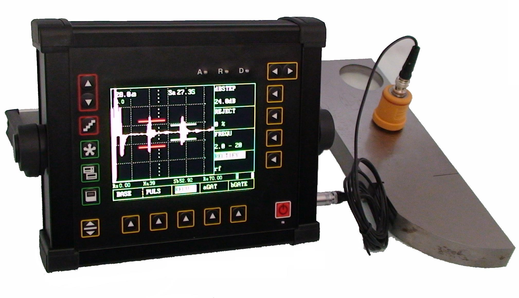 1、采用5.7"TFT高分辨率彩色液晶顯示屏,令回波信號(hào)波形細(xì)節(jié)得以精細(xì)顯示,大大提高分辨率,對(duì)缺陷性質(zhì)的分析和判斷極為有利。 2、最新開(kāi)發(fā)的、采用國(guó)內(nèi)業(yè)界領(lǐng)先的可調(diào)方波激勵(lì)技術(shù),內(nèi)置帶有可調(diào)節(jié)選項(xiàng)的高性能“方波/脈沖發(fā)生器”,實(shí)現(xiàn)與探頭的最佳匹配,對(duì)檢測(cè)高衰減材料或厚工件具有極佳的穿透力和信噪比,而對(duì)檢測(cè)薄工件和復(fù)合材料又有高的分辨率。 3、具有參考回波、回波包絡(luò)彩色顯示,優(yōu)化了回波動(dòng)態(tài)金屬檢測(cè) 設(shè)定閘門高度,自動(dòng)增益功能,省去了反復(fù)調(diào)節(jié)dB的麻煩,半跨距彩色編碼顯示用于焊縫檢測(cè),顯示直觀,便于分析。 4、在DAC模式下,對(duì)參考回波的記錄可以自動(dòng)調(diào)整增益使回波自動(dòng)調(diào)整到80%,使工作簡(jiǎn)化輕松, 最多可達(dá)16個(gè)標(biāo)定點(diǎn),曲線擬合更加精準(zhǔn)。 5、曲面校正功能可以幫助您對(duì)管材等曲面工件檢測(cè)時(shí)方便并精確的定位缺陷。 6、儀器可存儲(chǔ)900套數(shù)據(jù)報(bào)告用于記錄缺陷信息或配置信息,并可擴(kuò)容至1900套,每個(gè)報(bào)告可以添加包括工件信息、人員信息以及缺陷信息在內(nèi)的9種附加信息以幫助您記憶及分析。 7、強(qiáng)大的DGS曲線評(píng)估模式,三種參考模式(大平底、橫孔、平底孔)適用范圍廣,支持任意探頭,自動(dòng)標(biāo)定,自動(dòng)測(cè)量dB差,自動(dòng)評(píng)估缺陷尺寸