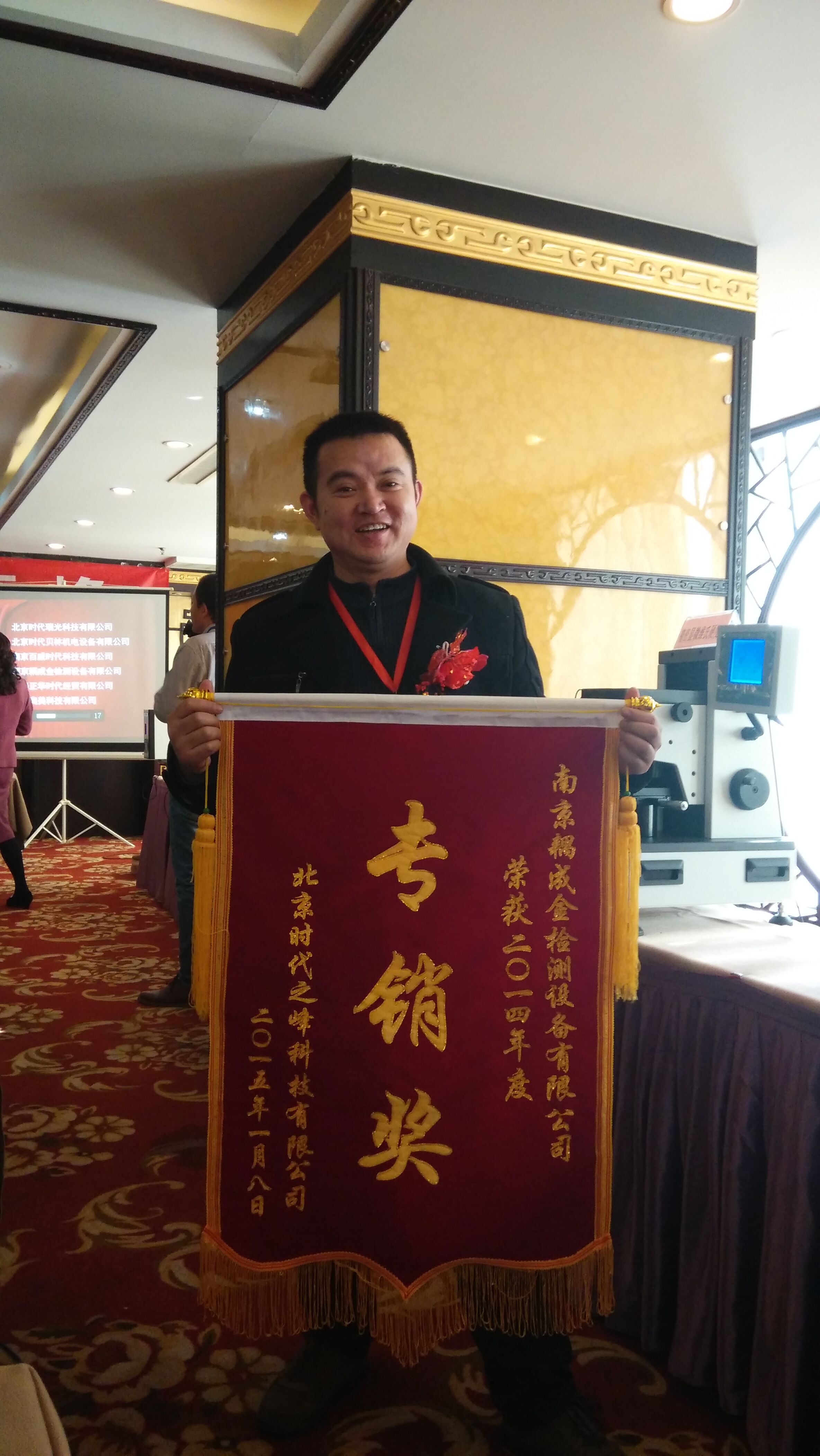南京耦成金檢測設備有限公司,立足江蘇,專做北京時代集團的產品:包括濟南試金集團的液壓萬能試驗機、電子萬能試驗機等;濟南試金儀器的彈簧試驗機、沖擊試驗機等;北京時代集團的里氏硬度計、粗糙度儀、超聲波探傷儀等,成績斐然。時代公司特發此獎。