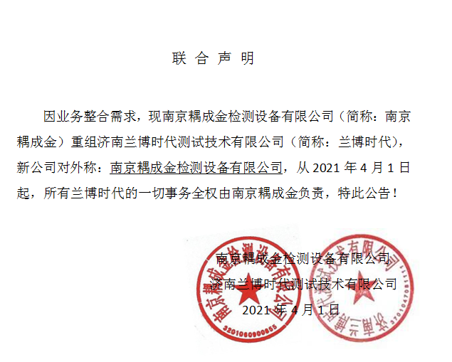 南京耦成金)重組濟(jì)南蘭博時代測試技術(shù)有限公司(簡稱: